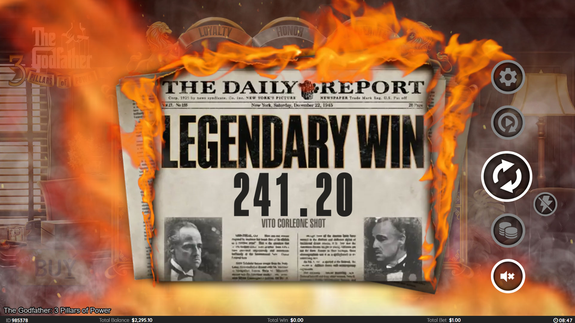 In this third installment of Atlantic Digital’s THE GODFATHER slot series, The Don teaches the players the 3 PILLARS that built his empire; LOYALTY, HONOR & VENGEANCE.